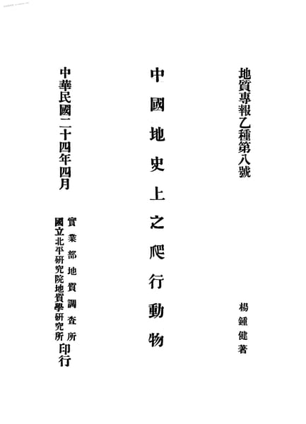 名称:《中国地史上之爬行动物》电子版合集