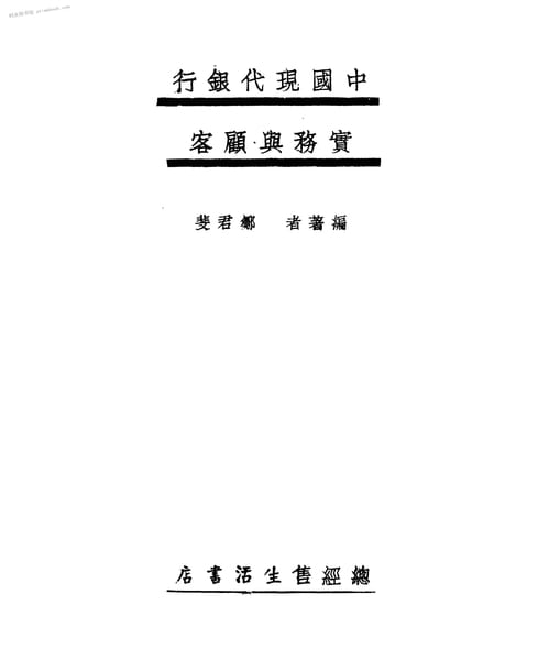 | 网盘路径:/时光图书馆珍藏系列/书籍文件/老图书/《中国现代银行实务与顾客》电子版合集.db | ||
