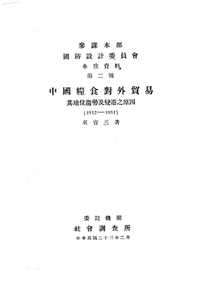 | 关键词:粮食贸易,国防设计委员会, | ||