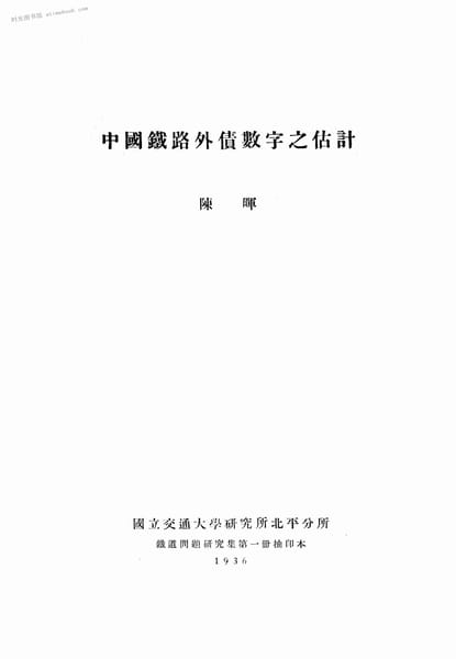 网盘路径:/时光图书馆珍藏系列/书籍文件/老图书/《中国铁路外债数字之估计》电子版合集.db