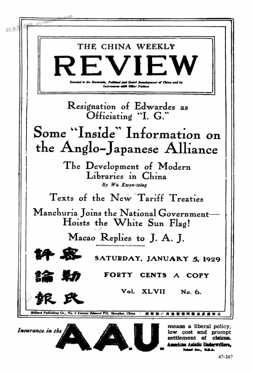 名称:《密勒氏评论报》(上海)1929-1930年合集