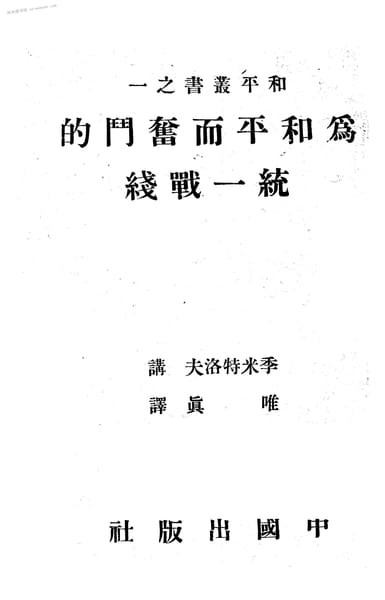| 网盘路径:/时光图书馆珍藏系列/书籍文件/老图书/《为和平而奋斗的统一战线》电子版合集.db | ||