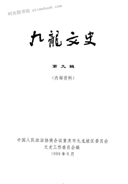 | 网盘路径:/时光图书馆珍藏系列/书籍文件/老图书/《九龙文史_第9辑》电子版合集.db | ||