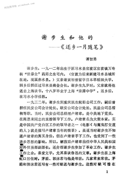 2-谢步生和他的《还乡一月随笔》谭智勇