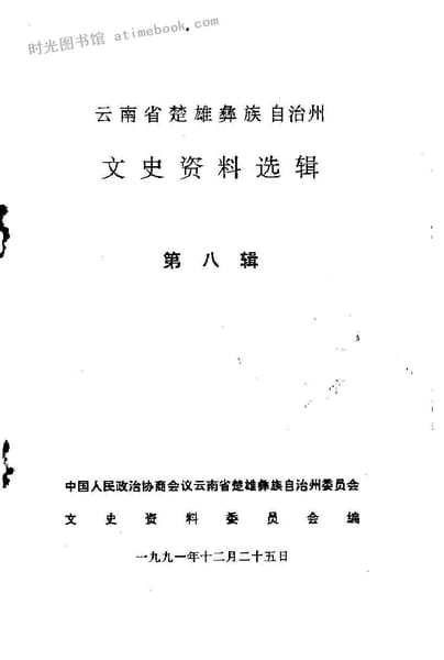 | 网盘路径:/时光图书馆珍藏系列/书籍文件/老图书/《云南省楚雄彝族自治州文史资料选辑_第8辑》电子版合集.db | ||