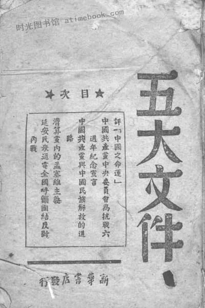 | 网盘路径:/时光图书馆珍藏系列/书籍文件/老图书/《五大文件》电子版合集.db | ||