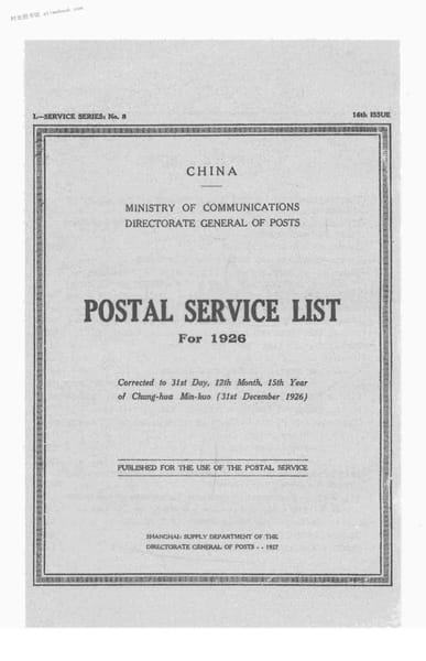 | 网盘路径:/时光图书馆珍藏系列/书籍文件/老图书/《交通部所管邮政题名录(第16版)》电子版合集.db | ||