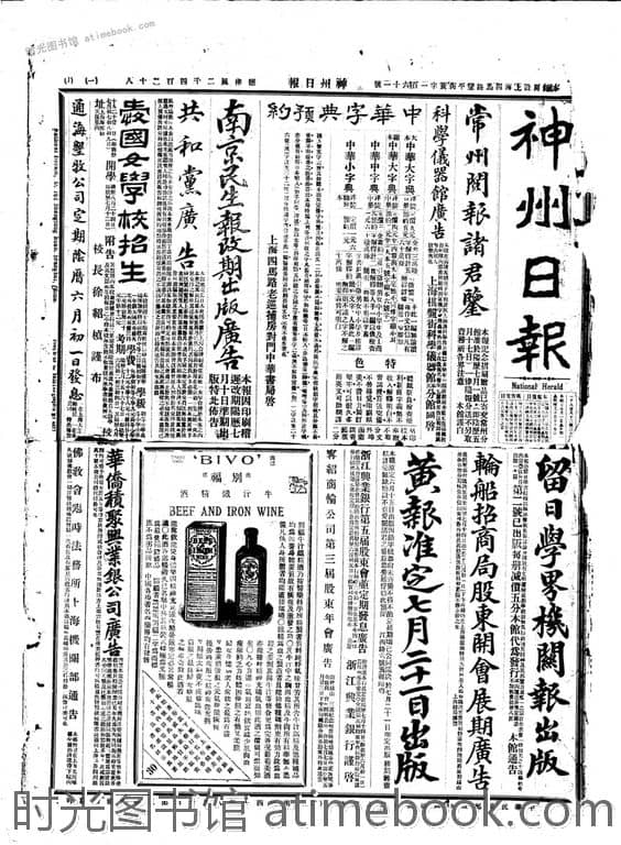 | 网盘路径:/时光图书馆珍藏系列/书籍文件/老报纸/上海/《神州日报》(上海)1907-1946/《神州日报》(上海)1912年合集下半年.db | ||