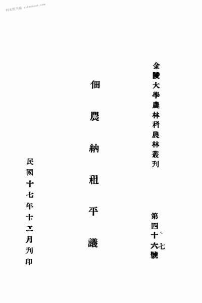 | 网盘路径:/时光图书馆珍藏系列/书籍文件/老图书/《佃农纳租平议》电子版合集.db | ||