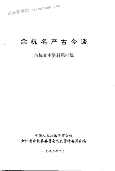| 网盘路径:/时光图书馆珍藏系列/书籍文件/老图书/《余杭文史资料_第7辑_余杭名产古今谈》电子版合集.db | ||