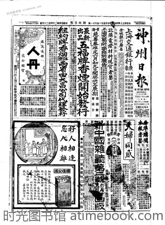 网盘路径:/时光图书馆珍藏系列/书籍文件/老报纸/上海/《神州日报》(上海)1907-1946/《神州日报》(上海)1919年合集下半年.db