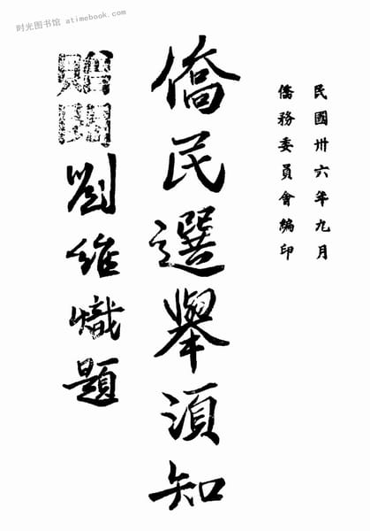 | 网盘路径:/时光图书馆珍藏系列/书籍文件/老图书/《侨民选举须知》电子版合集.db | ||