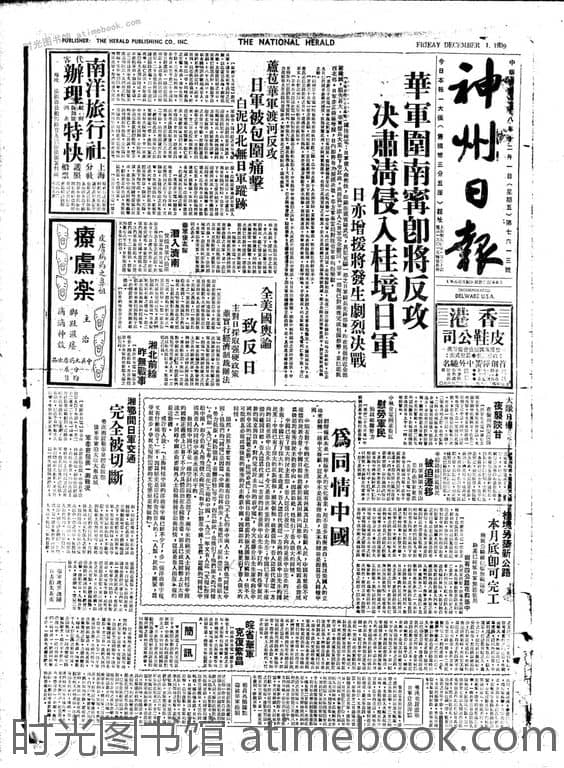 | 网盘路径:/时光图书馆珍藏系列/书籍文件/老报纸/上海/《神州日报》(上海)1907-1946/《神州日报》(上海)1939-1940年合集.db | ||