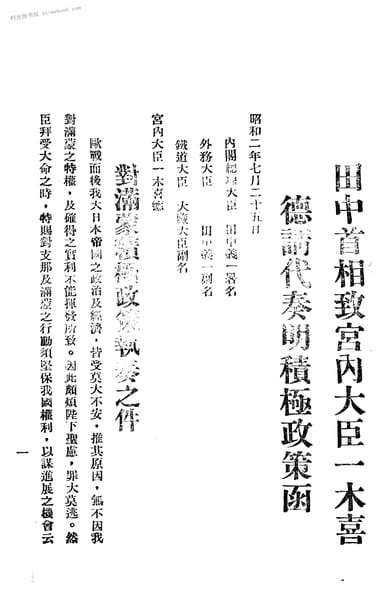 2-田中首相致宫内大臣一木喜德请代奏明积极政策函