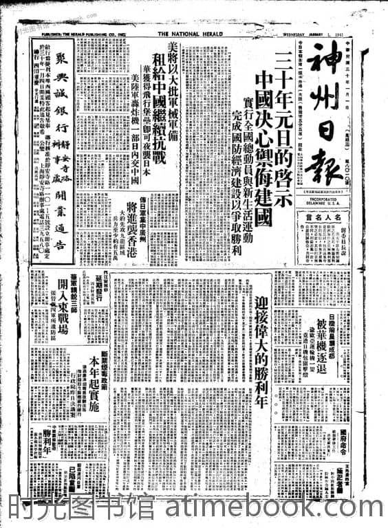 | 网盘路径:/时光图书馆珍藏系列/书籍文件/老报纸/上海/《神州日报》(上海)1907-1946/《神州日报》(上海)1941年影印版合集.db | ||