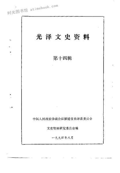 | 网盘路径:/时光图书馆珍藏系列/书籍文件/老图书/《光泽文史资料_第14辑》电子版合集.db | ||