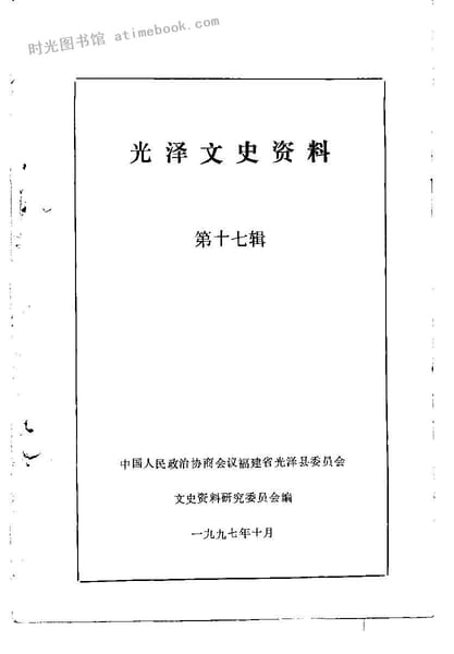 | 网盘路径:/时光图书馆珍藏系列/书籍文件/老图书/《光泽文史资料_第17辑》电子版合集.db | ||