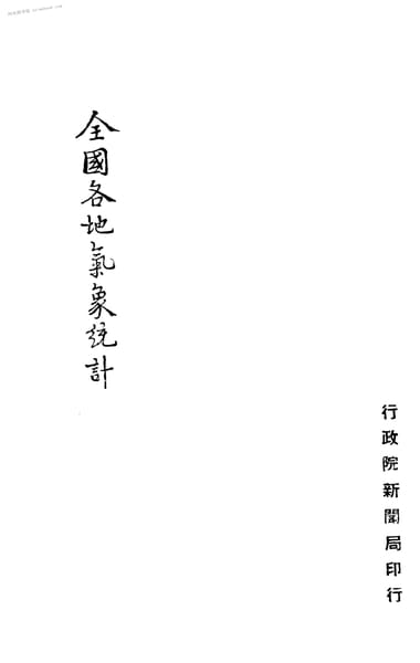 | 网盘路径:/时光图书馆珍藏系列/书籍文件/老图书/《全国各地气象统计》电子版合集.db | ||