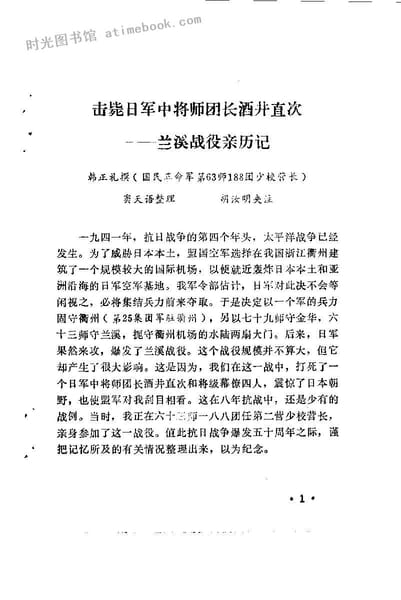 2-击毙日军中将师团长酒井直次——兰溪战役亲历记韩正礼撰窦天语整理胡汝明夹注