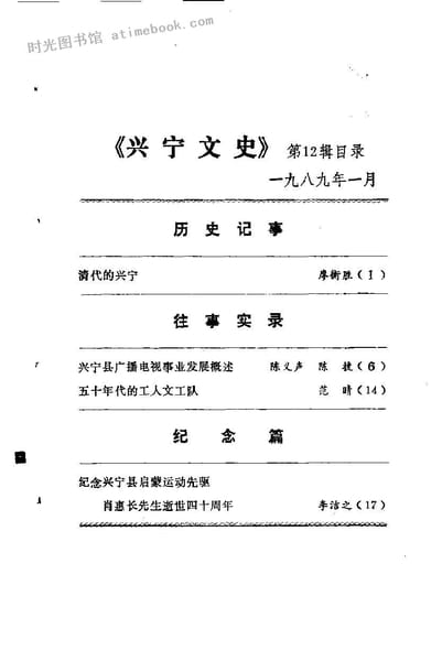 | 网盘路径:/时光图书馆珍藏系列/书籍文件/老图书/《兴宁文史_第12辑》电子版合集.db | ||