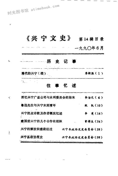 | 网盘路径:/时光图书馆珍藏系列/书籍文件/老图书/《兴宁文史_第14辑》电子版合集.db | ||