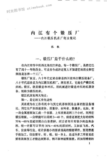 2-内江有个锻压厂——内江锻压机床厂创业散记(张敏)