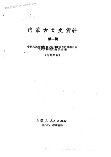 | 网盘路径:/时光图书馆珍藏系列/书籍文件/老图书/《内蒙古文史资料_第2辑》电子版合集.db | ||