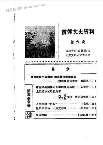 | 网盘路径:/时光图书馆珍藏系列/书籍文件/老图书/《前郭文史资料_第6辑》电子版合集.db | ||