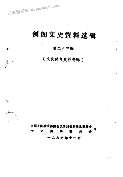 网盘路径:/时光图书馆珍藏系列/书籍文件/老图书/《剑阁文史资料选辑__第23辑_(文化体育史料专辑)》电子版合集.db
