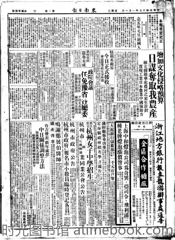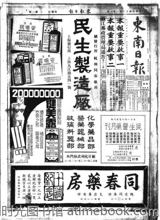 | 网盘路径:/时光图书馆珍藏系列/书籍文件/老报纸/福建/《东南日报》(福建南平)1927-1945/《东南日报》(福建南平)1936-1937年合集.db | ||