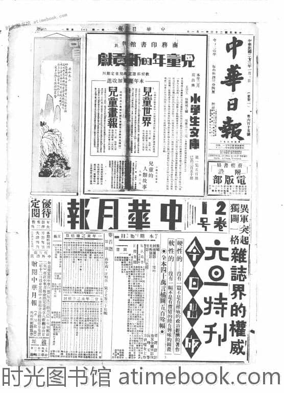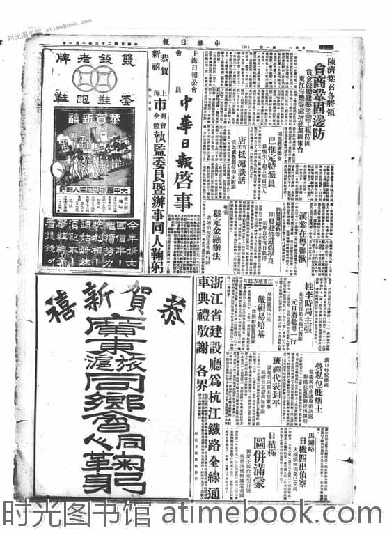 网盘路径:/时光图书馆珍藏系列/书籍文件/老报纸/上海/《中华日报》(上海)1928-1945/《中华日报》(上海)1934年影印版合集.db