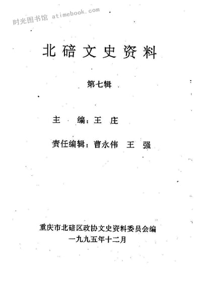 | 网盘路径:/时光图书馆珍藏系列/书籍文件/老图书/《北碚文史资料_第7辑》电子版合集.db | ||