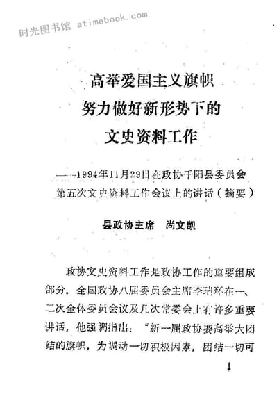 3-高举爱国主义旗帜努力做好新形势下的文史资料工作县*主席尚文凯