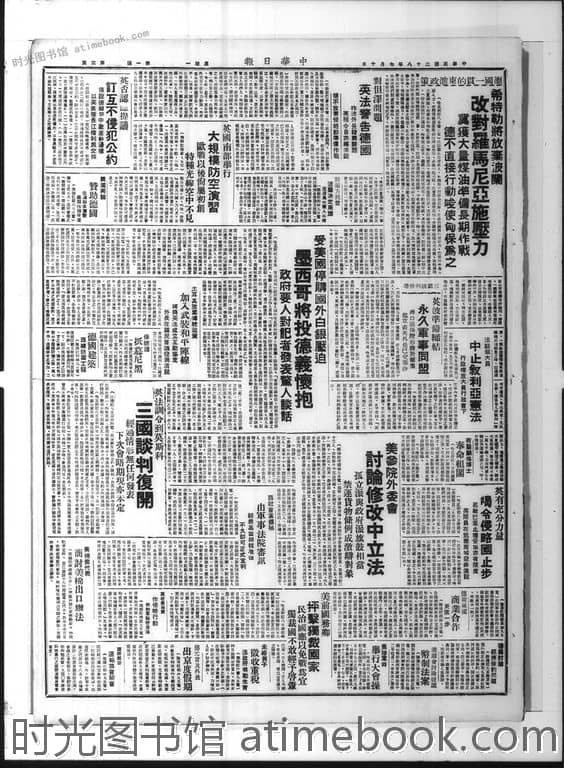 | 网盘路径:/时光图书馆珍藏系列/书籍文件/老报纸/上海/《中华日报》(上海)1928-1945/《中华日报》(上海)1939年影印版合集.db | ||