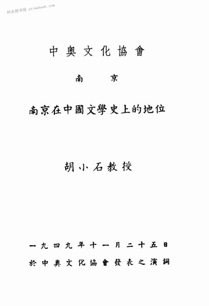 网盘路径:/时光图书馆珍藏系列/书籍文件/老图书/《南京在中国文学史上的地位》电子版合集.db
