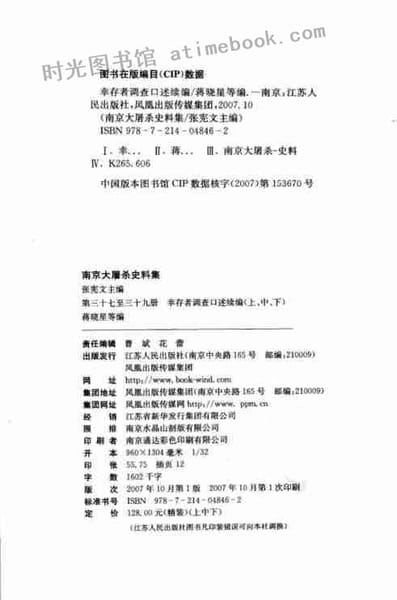 | 网盘路径:/时光图书馆珍藏系列/书籍文件/老图书/《南京大屠杀史料集(39)幸存者调查口述续编(下)》电子版合集.db | ||