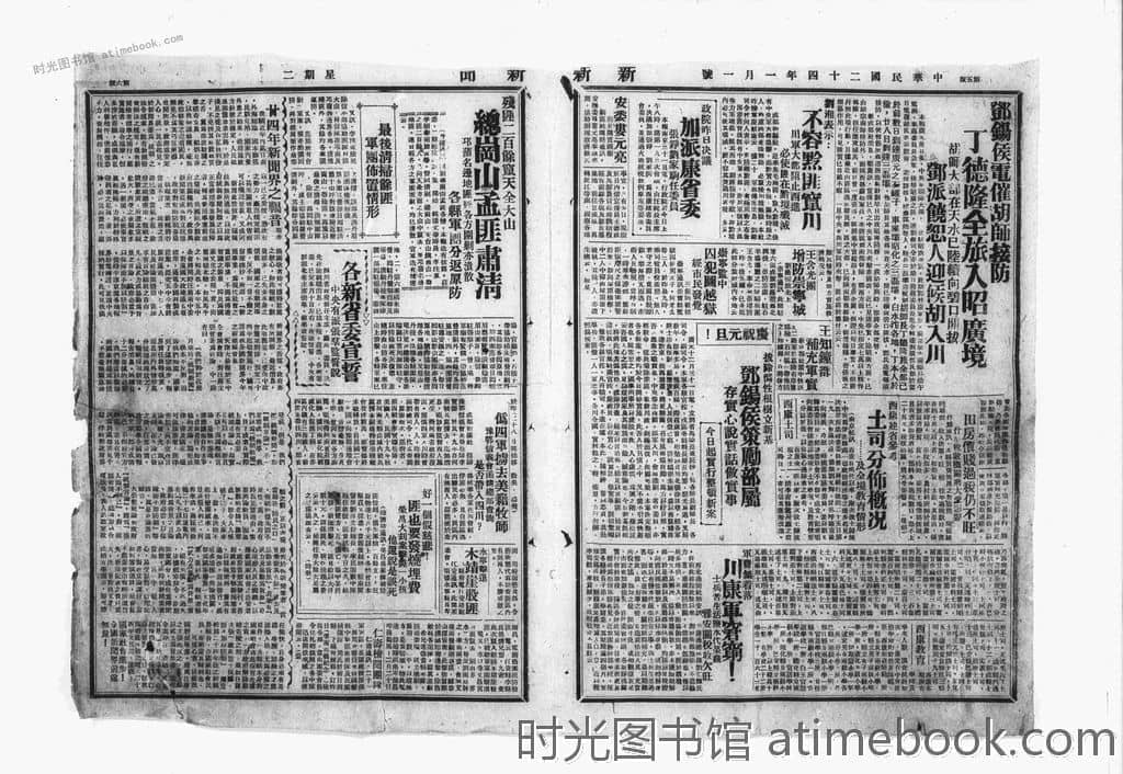 网盘路径:/时光图书馆珍藏系列/书籍文件/老报纸/四川/《新新新闻》(成都)1930-1950/《新新新闻》(成都)1935年影印版合集.db