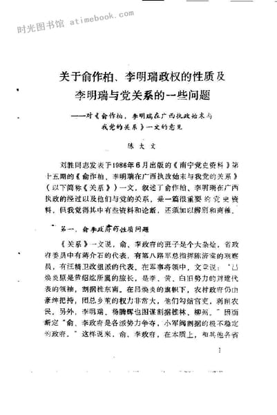 2-关于俞作柏、李明瑞*的性质及李明瑞与*的关系的一些问题——对《俞作柏,李明瑞在广西执政始末与我*的关系》一文的意见陈大文-1