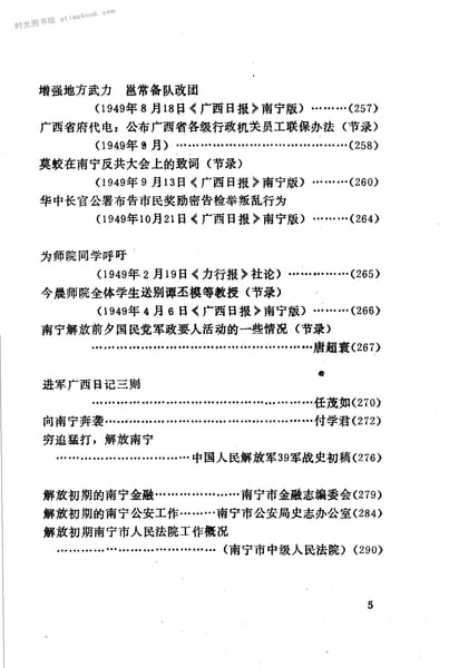 | 网盘路径:/时光图书馆珍藏系列/书籍文件/老图书/《南宁解放》电子版合集.db | ||
