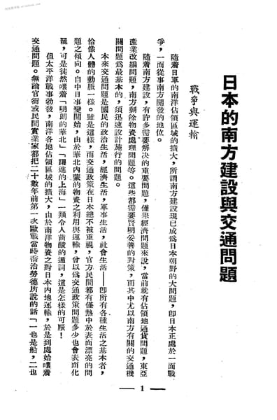 2-日本的南方建设与交通问题