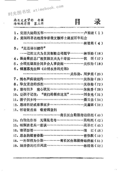 | 网盘路径:/时光图书馆珍藏系列/书籍文件/老图书/《南长文史资料专辑_第2辑_海峡两岸情》电子版合集.db | ||