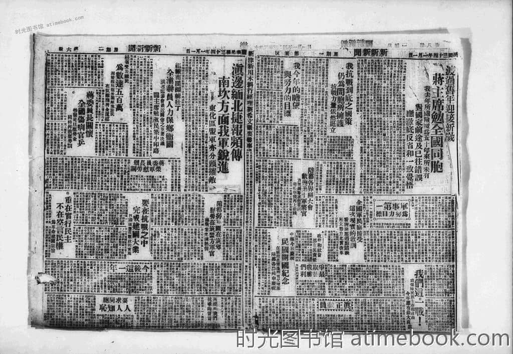 | 网盘路径:/时光图书馆珍藏系列/书籍文件/老报纸/四川/《新新新闻》(成都)1930-1950/《新新新闻》(成都)1945年影印版合集.db | ||