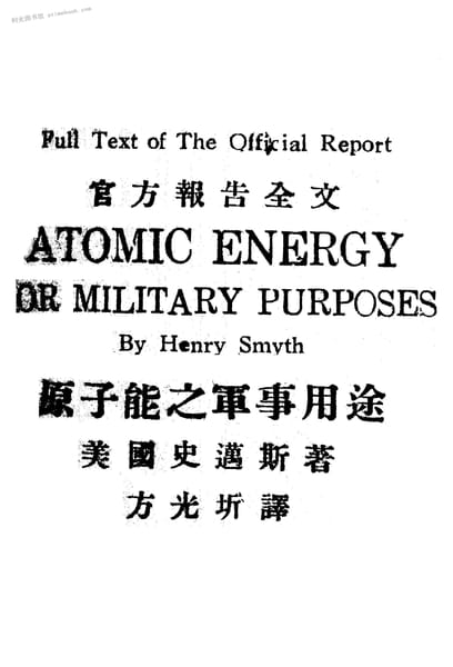 网盘路径:/时光图书馆珍藏系列/书籍文件/老图书/《原子能之军事用途》电子版合集.db