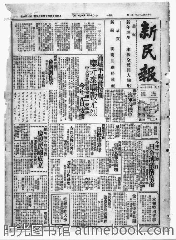 | 网盘路径:/时光图书馆珍藏系列/书籍文件/老报纸/江苏/《新民报》(南京)1931-1950/《新民报》(南京)1934年合集.db | ||