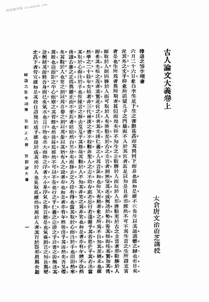 | 网盘路径:/时光图书馆珍藏系列/书籍文件/老图书/《古人论文大义》电子版合集.db | ||