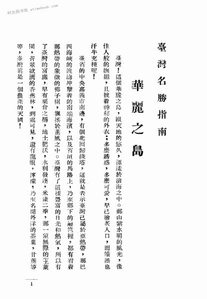 | 网盘路径:/时光图书馆珍藏系列/书籍文件/老图书/《台湾名胜指南》电子版合集.db | ||