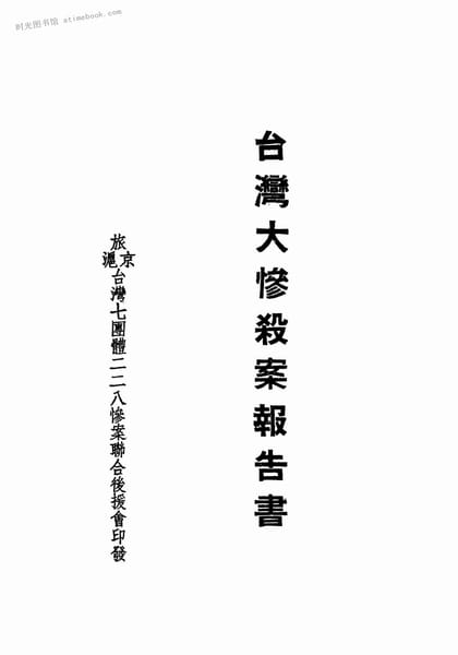 | 网盘路径:/时光图书馆珍藏系列/书籍文件/老图书/《台湾大惨杀案报告书》电子版合集.db | ||