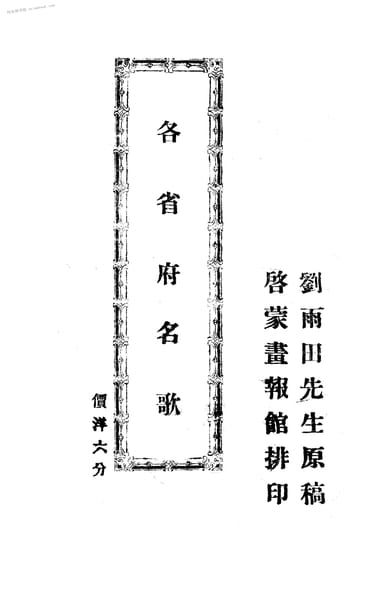 网盘路径:/时光图书馆珍藏系列/书籍文件/老图书/《各省府名歌》电子版合集.db