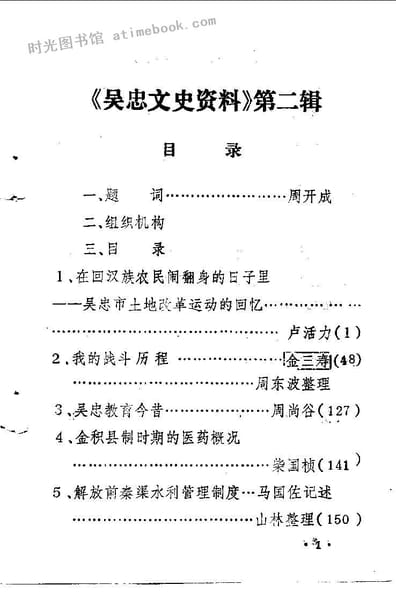 | 网盘路径:/时光图书馆珍藏系列/书籍文件/老图书/《吴忠文史资料_第2辑》电子版合集.db | ||