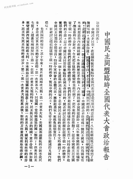 2-中国民主同盟临时全国代表在会政治报告
